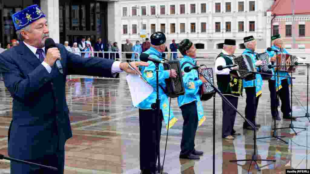 30 августа на площади перед театром Г.Камала прошел традиционный праздник "Играй, гармонь!". Шел дождь - зрителям, пришедшим к 10 утра, пришлось дожидаться начала музыкального праздника целый час. В прошлом году народу было ощутимо больше. В этот раз у театра Г.Камала не было ни одной вывески, ни одного баннера с поздравлениями с Днем Республики.