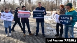 Участники акции держали в руках плакаты "Родился при Путине, живу при Путине, умру при Путине", "Такого как Путин, чтобы не бил", "Наш дурдом голосует за Путина", "In Putin we trust". Участники пикета также скандировали "Россия за Путина!". Акция "Открытой России" вызвала большой интерес среди гуляющих в сквере пенсионерок, большинство из которых высказывали слова поддержки президенту Владимиру Путину. Были, однако, и те, кто поддержал протестующих и критиковал политику главы государства.
