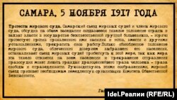 Протесты мирового суда. Самарский съезд мировых судей и члены мирового суда, обсудив на общем заседании создавшееся тяжелое положение страны и захват власти в государстве безответственной группой большевиков, — горячо протестует против проявленного ими насилия и готов, вмести с другими установлениями, прекратить свою работу.