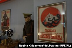 Когда входишь в помещение Национального музея, отведенное под выставку "Стихия революции: 1917 год в истории России", сразу замечаешь "перекос" — вся экспозиция оформлена в красных тонах, повсюду на стенах демократические, социалистические и советские лозунги. Замечая это, спрашиваем у нашего собеседника, есть ли у них что-то о либералах, о белом движении, о татарском национальном движении. Выясняется, что есть небольшой "татарский уголок", немного по революции 1905 года, несколько экспонатов посвящено белой эмиграции, а также попытке основания штата Идель-Урал.