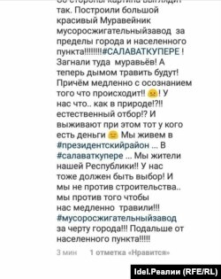 — Пишем не только мы, "Салават күпере", но и жители других районов Казани, Осиново, Зеленодольска. Все мы говорим, что выступаем против строительства завода и просим Рустама Нургалиевича помочь в нашей борьбе, изучить вопрос более тщательно. К сожалению, раз от раза мы видим, как наши сообщения просто удаляются. Скорее всего его помощники делают это, пока он не увидел, и просто не доносят всю информацию, — заявили жители "Салават күпере".