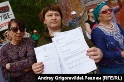 — Если переселят, разве я еще раз смогу построиться? А снова вырастить сад? — размышляет еще одна владелица дома в Новой Сосновке, Зульфия Газизова (это женщина, которая держит документы перед собой).