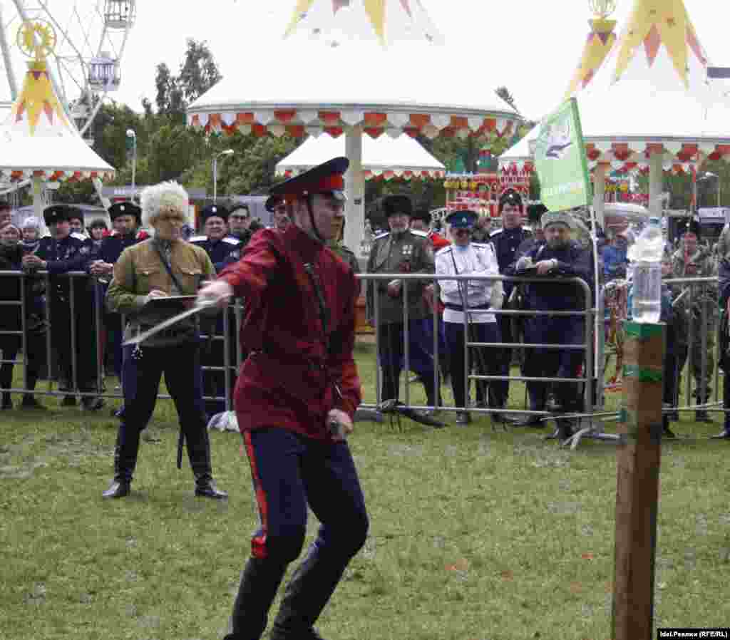 Сегодня в Набережных Челнах прошел фестиваль казачьей культуры "Закамская засечная линия". Он собрал участников со всего Татарстана и с соседней республики Башкортостан, с города Уфы. Казаки состязались в турнире по рубке шашкой "Челнинская казарла". Победителем стал участник из Набережных Челнов. Затем прошел концерт с участием коллективов из Менделеевска, Агрыза и Казани. Ранее десятник Боровецкого хутора 40-летний Сергей Фирсов рассказал, как складывается жизнь казаков, и кто их спонсирует.