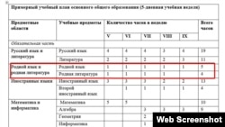 ​Для 5-9-х классов предлагается два варианта учебной программы. В обоих из них предметам "родной язык" и "родная литература" отводится по одному уроку в неделю. В одном из вариантов в 9 классе урока "родная литература" нет вообще.