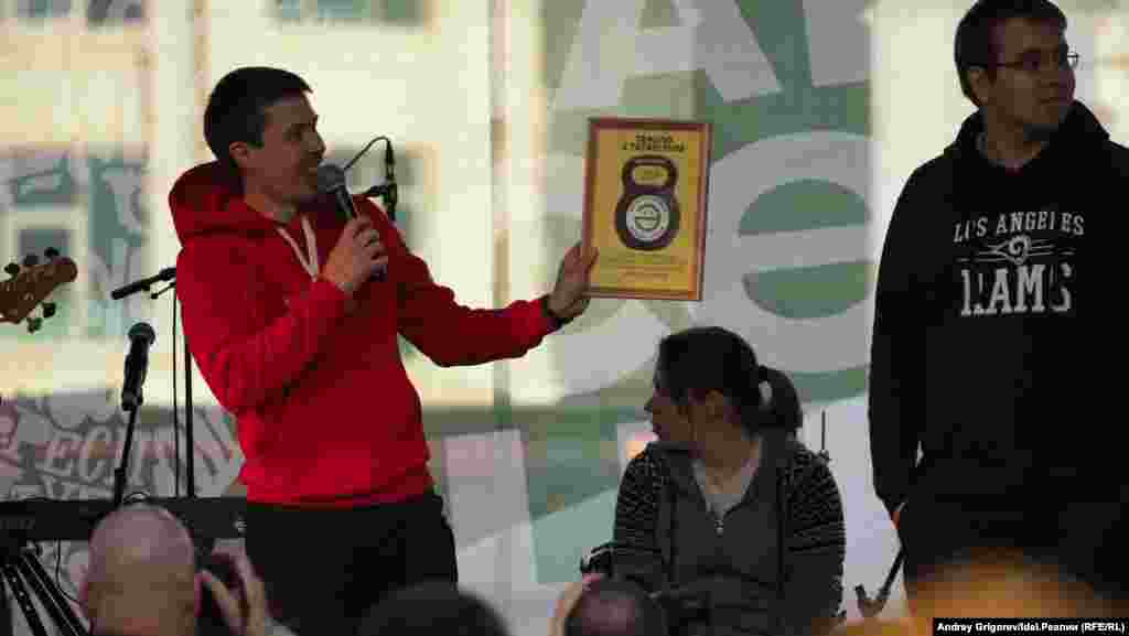 Альтернативная музыка на татарском, подведение итогов квеста "Татар Дозор", премии и антипремии. Ставшая уже традиционной акция "Мин татарча сөйләшәм!" прошла в пятницу, 26 апреля, на улице Баумана под часами.