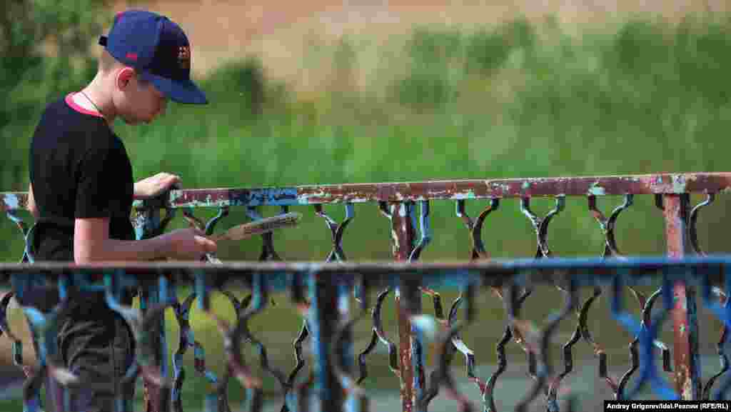 Местные жители принесли скребки, кисти и краски. Остатки ржавчины и старой краски отскабливали, поверх — наносили новую, синюю. Двумя неделями раньше, напомним, люди привели в порядок обмелевший берег под пирсом. Мусора тогда набралось на две грузовые "Газели". Все эти старания, впрочем, могут пойти прахом. Властям города и района не нужен парк на этом месте. Уже найден застройщик территории, который, как подозревают активисты, оставит от рощи с парком одну жалкую аллею.