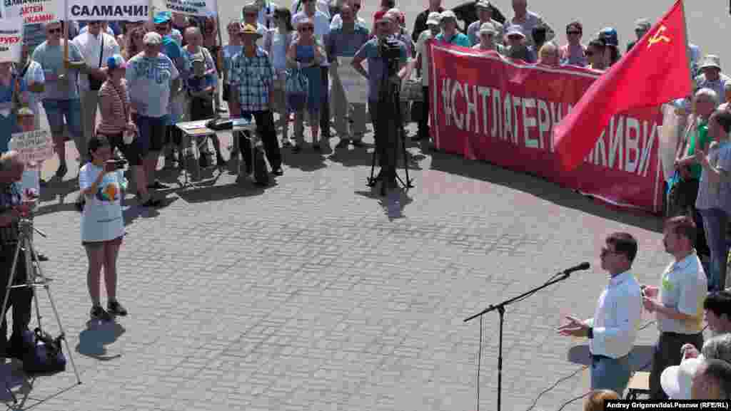 Неожиданностью для участников митинга, состоявшегося в Кировском районе у Красных ворот, стало отсутствие ставших уже привычными для казанских митингов ограждений с досмотром каждого входящего на территорию, отведенную под митинг, сотрудниками полиции. Да и самих полицейских были непривычно мало. Фотокор "Idel.Реалии" насчитал всего пятерых блюстителей закона в форме и, кроме того, не заметил примелькавшихся уже лиц сотрудников центра "Э".