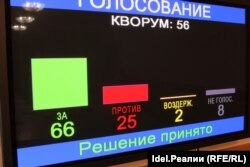 За принятие закона в целом проголосовало 66 депутатов, против — 25, воздержалось двое и еще восемь не голосовало.