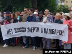 "Нет переработке отходов в Камбарке!", — подхватывает толпа предложенный очередным выступающим лозунг.