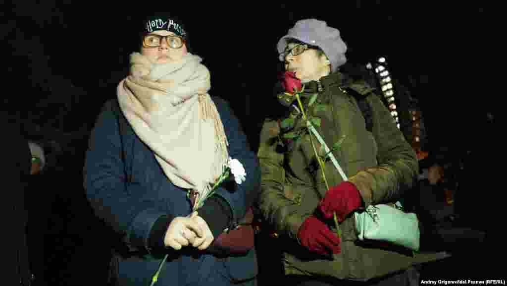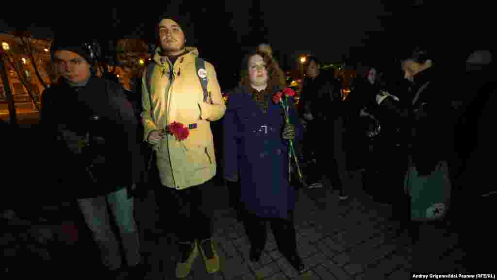 День памяти жертв политических репрессий в Казани завершился традиционным возложением цветов у памятника жертвам репрессий в Ленинском садике. В семь вечера здесь собралось около сорока участников акции.