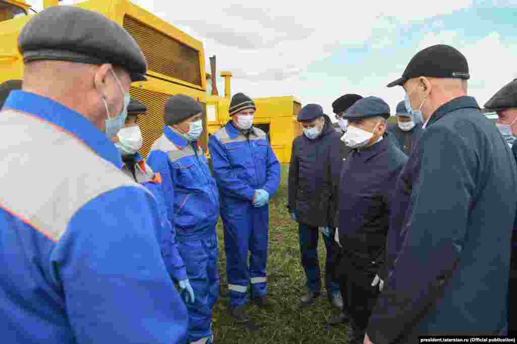 Все кадры сделаны во время поездок президента РТ Рустама Минниханова в сельские районы в апреле 2020 года, когда в Татарстане уже действовал режим строгой "самоизоляции".