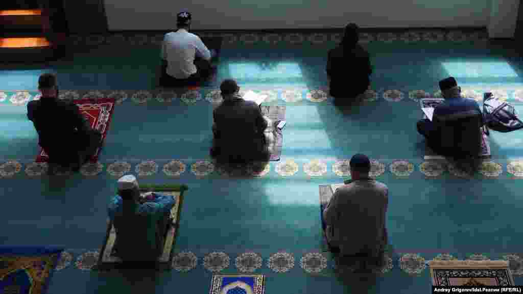 Теперь их посещение разрешено — но только в масках и перчатках, кроме того, необходимо соблюдать социальную дистанцию. Корреспондент "Idel.Реалии" побывал на первом пятничном намазе в казанской мечети "Гаилә". Эта мечеть расположена в микрорайоне "Азино", где плотность населения очень высокая, потому обычно пятничные намазы здесь собирали одновременно порядка 700 прихожан (как внутри здания, так и во дворе) — однако в эту пятницу, 5 июня, мечеть смогла принять лишь около 200 человек. Во дворе и внутри мечети нанесли специальную разметку — полоски, рядом с которыми надлежало класть молельные коврики.