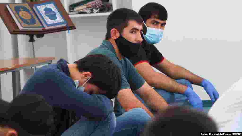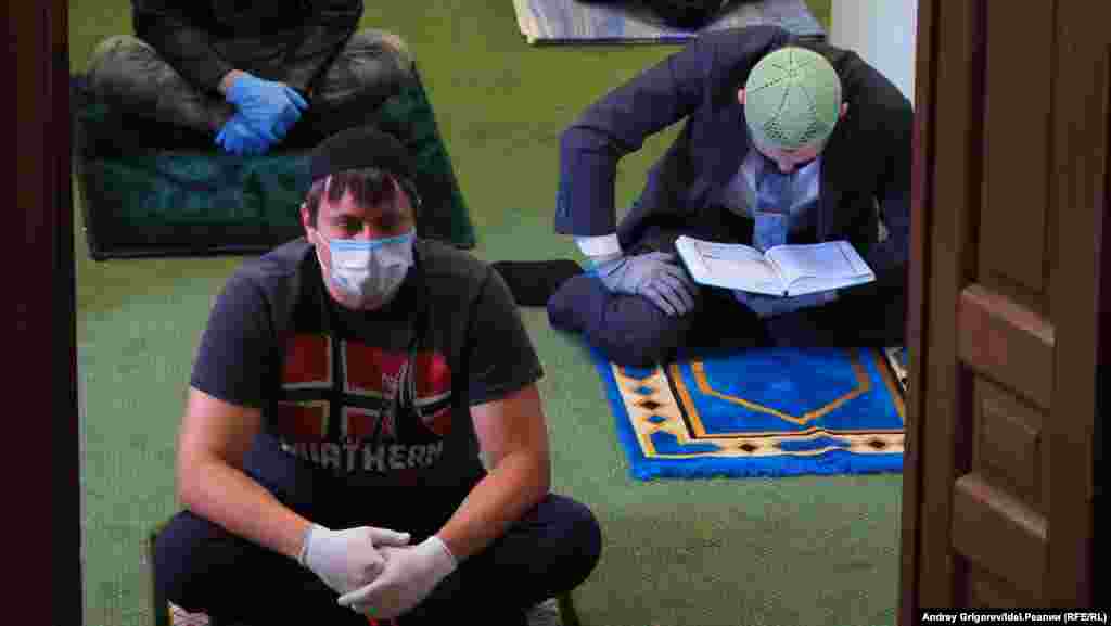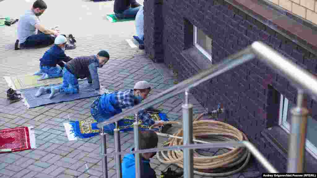 Теперь их посещение разрешено — но только в масках и перчатках, кроме того, необходимо соблюдать социальную дистанцию. Корреспондент "Idel.Реалии" побывал на первом пятничном намазе в казанской мечети "Гаилә". Эта мечеть расположена в микрорайоне "Азино", где плотность населения очень высокая, потому обычно пятничные намазы здесь собирали одновременно порядка 700 прихожан (как внутри здания, так и во дворе) — однако в эту пятницу, 5 июня, мечеть смогла принять лишь около 200 человек. Во дворе и внутри мечети нанесли специальную разметку — полоски, рядом с которыми надлежало класть молельные коврики.