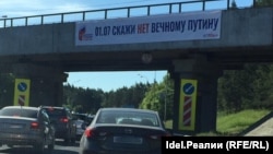 При въезде в Казань повесили баннер "1.07 скажи нет вечному Путину"
