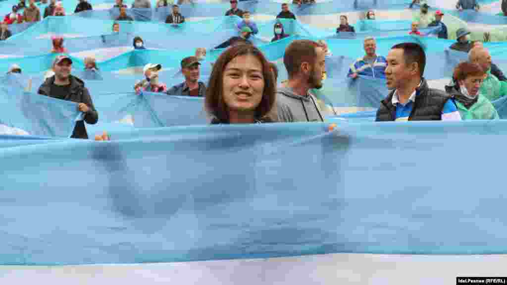 Лозунги "Хабиров, уходи!", "Хабаровск мы с тобой!", "Куштау, яшә!" тут скандируют, выстроившись в живую цепь длиной в 4 км и схватившись за триколор — только не российский, а башкирский.