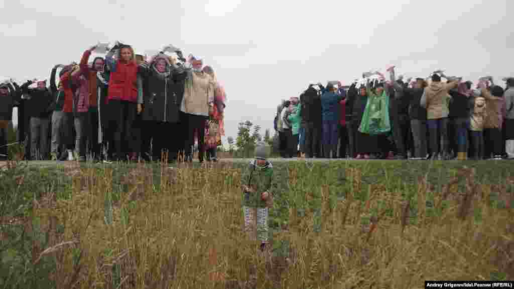 На автодороге у села Тарлаши, вдоль которого проектировщики планируют протянуть магистраль, собралось около семисот человек. Люди стояли вдоль трассы, держа в руках буквы, которые складывались в названия их населенных пунктов. Затем участники схода выстроилось в гигантские буквы так, чтобы сверху можно было прочитать слово "Стоп". Организаторы снимали акцию с квадрокоптера.