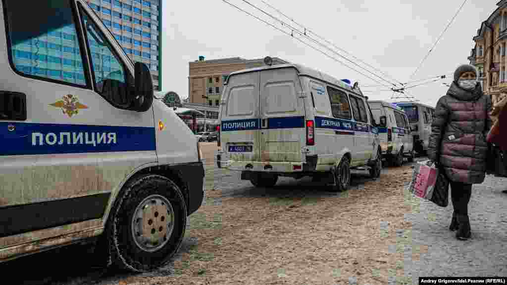 Изначально участники протеста в Казани планировали пройти по пешеходной улице Баумана от часов к кремлю — но это удалось далеко не всем. В два дня, 23 января, площадь с часами заняли полиция с росгвардией, а саму Баумана — перекрыли. Стихийно родилось предложение — идти на площадь Свободы, к Кабмину РТ. Такое отступление от планов, судя по всему, оказалось неожиданным для силовиков. Протестующие заняли площадь напротив дома правительства раньше, чем туда успели стянуть полицию с росгвардией.