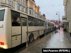 В Казани сейчас вот так. Акции должна начаться через несколько минут. Как передает наш корреспондент, на улице много сотрудников правоохранительных органов, автозаков и автобусов с полицейскими.
