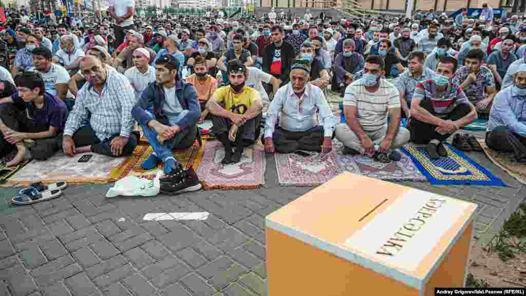 Около тысячи человек собралось на праздничный намаз по случаю Курбан-байрама во дворе казанской мечети "Гаилә" в казанском микрорайоне Азино. Из-за жестких ограничений, продиктованных пандемией коронавируса COVID-19, само здание могло вместить лишь несколько сотен человек — по этой причине имам Рустем Хайруллин решил, что все без исключения пришедшие будут молиться во дворе мечети, чтобы между верующими не было искусственного разделения. Прочтя проповедь с крыльца, а потом спустился к остальным участникам молитвы.