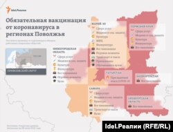 В Татарстане, как заявила десять дней назад на пресс-конференции главный санврач республики Марина Патяшина, введение обязательной вакцинации не исключают — если "темпы вакцинации будут вот такими невысокими" (По данным на 28 июля, в Татарстане обе дозы вакцины получили чуть более 564 тысяч человек, в республике живет около четырех миллионов человек).