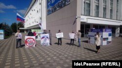 Сегодня, 28 августа в Кирове возле городской администрации прошел пикет в защиту избирательных прав граждан и против привелигированного положения партии "Единая Россия". Об этом сообщает корреспондент "Idel.Реалии" с места событий.