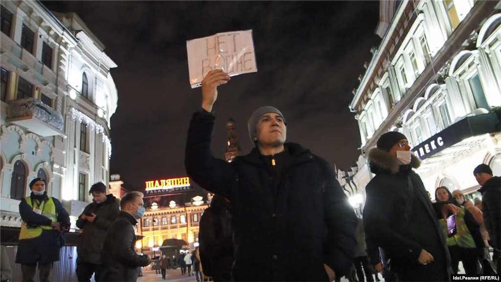 В Казани на улице Баумана собрались десятки человек для того, чтобы выразить протест войне с Украиной.