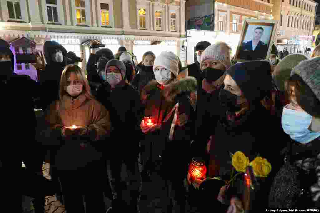 У них были цветы, свечи и портрет первого официально признанного погибшим контрактника из Татарстана — уроженца Нижнекамска Ильнура Сибгатуллина.