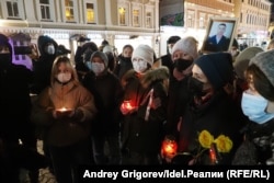 Постояв минут десять, молодежь приставляет портрет "контрактника" к оградке колокольни, повязывает на оградку ленточки и расставляет свечи. После этого все быстро расходятся.