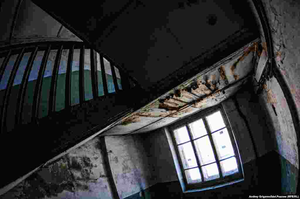 Бывшее общежитие завода обозных деталей на Мало-Московской, 30/13 тоже успели последовательно признать и градоформирующим историческим объектом (2017-й), и аварийным зданием (2018 год). Внутри обшарпанное здание выглядит ещё хуже: щели, штукатурка со стен и потолка отваливается кусками. «Удобства», кстати, расположены в дворе здания.