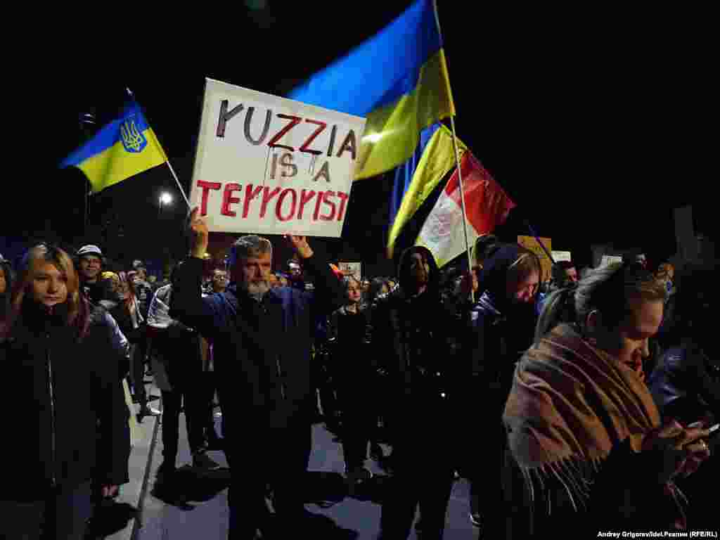Стихийный митинг у ворот посольства РФ в Варшаве явился реакцией на ракетные удары, которые российская армия нанесла по украинским городам утром и днём 10 октября. Военные били по жилым районам и объектам инфраструктуры. Президент РФ Владимир Путин и российские пропагандисты назвали это "жёстким ответом" за субботний взрыв на Крымском мосту. По оценкам корреспондента "Idel.Реалии", стихийная акция собрала более тысячи участников, в основном украинцев и поляков. Количество участников было настолько большим, что полиции пришлось перекрыть с двух сторон улицу для автомобильного движения. Большинство людей держало в руках плакаты, в которых Россия называлась террористическим государством.