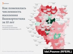 В Башкортостане ситуация схожая. Прирост населения наблюдается вокруг Уфы и Стерлитамака.