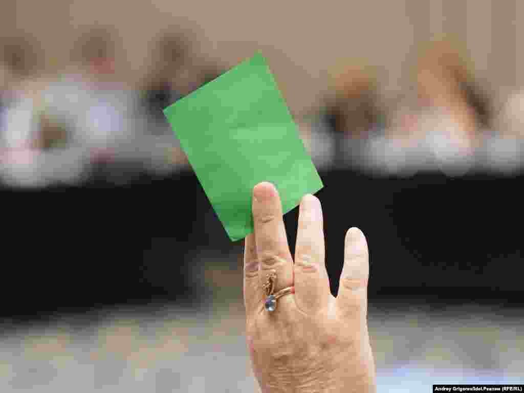 Кроме того, на съезде депутаты последний раз голосовали мандатами — зелёными листочками бумаги (см. фото) — на смену им пришло мобильное приложение.