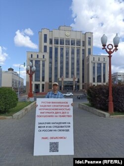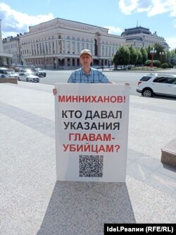 Алексей Соловьёв в одиночном пикете у Кабмина РТ, июль.