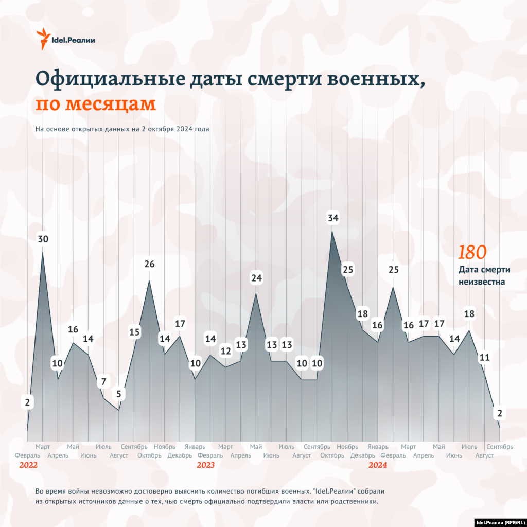 Количество погибших в действительности больше, мы руководствуемся лишь данными из открытых источников. По подсчетам "Idel.Реалии", с начала войны погибли как минимум 19 993 уроженца и жителя Поволжья.
